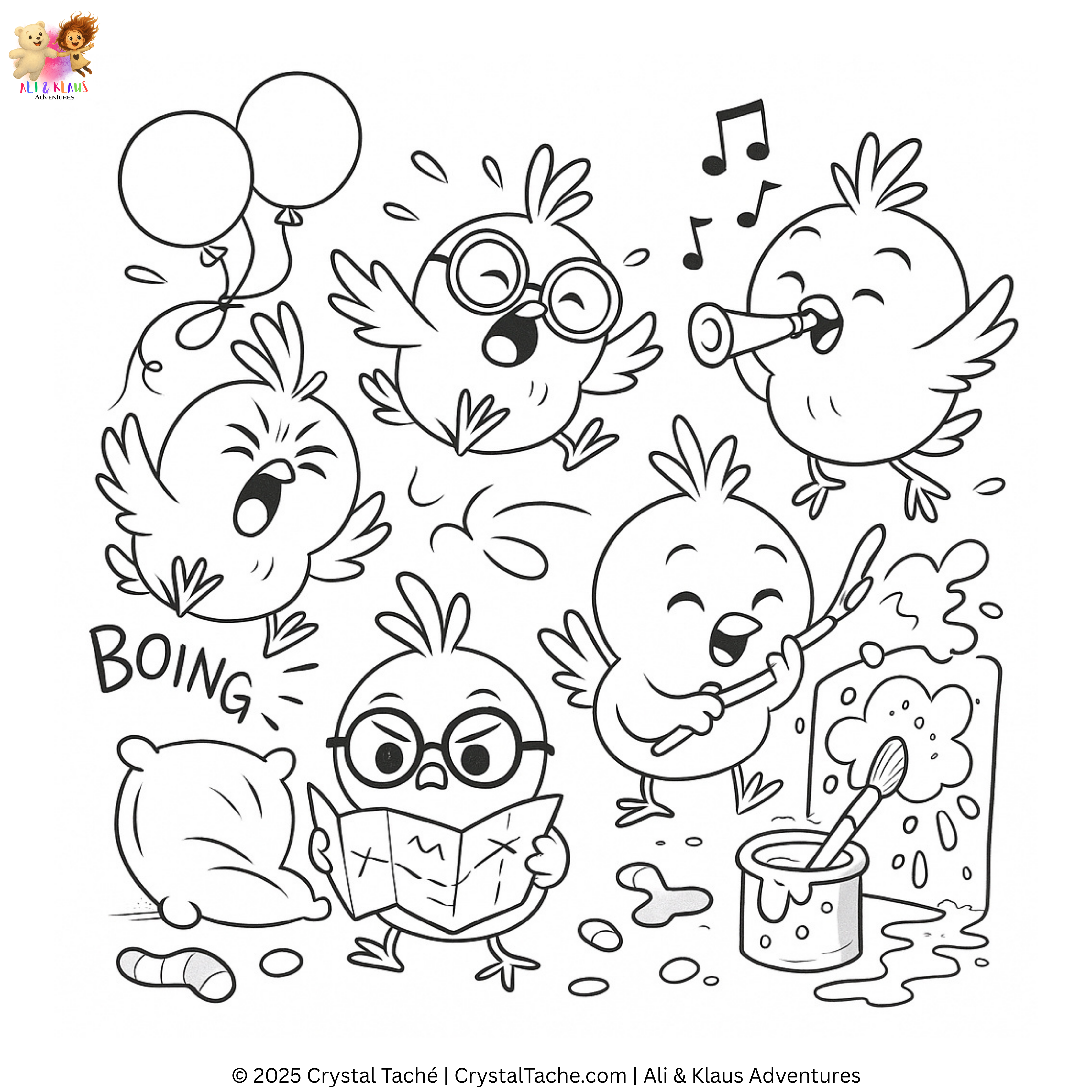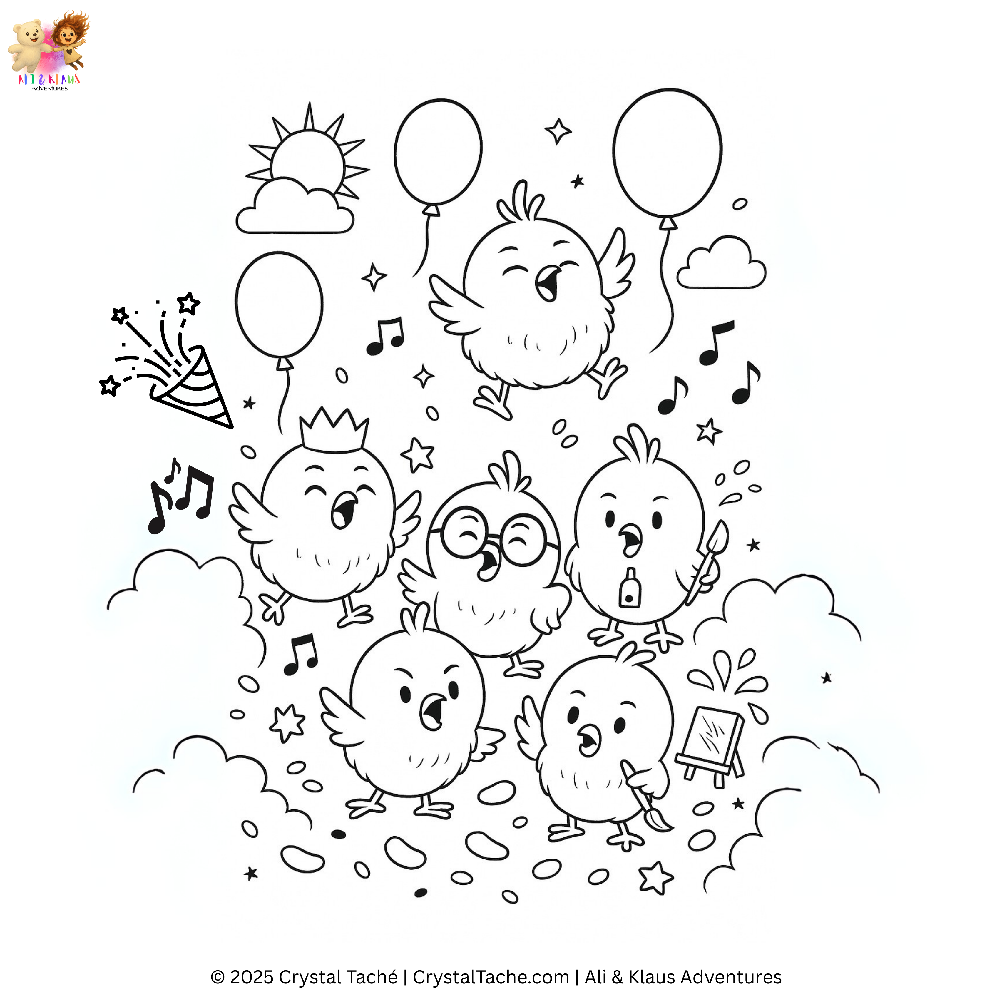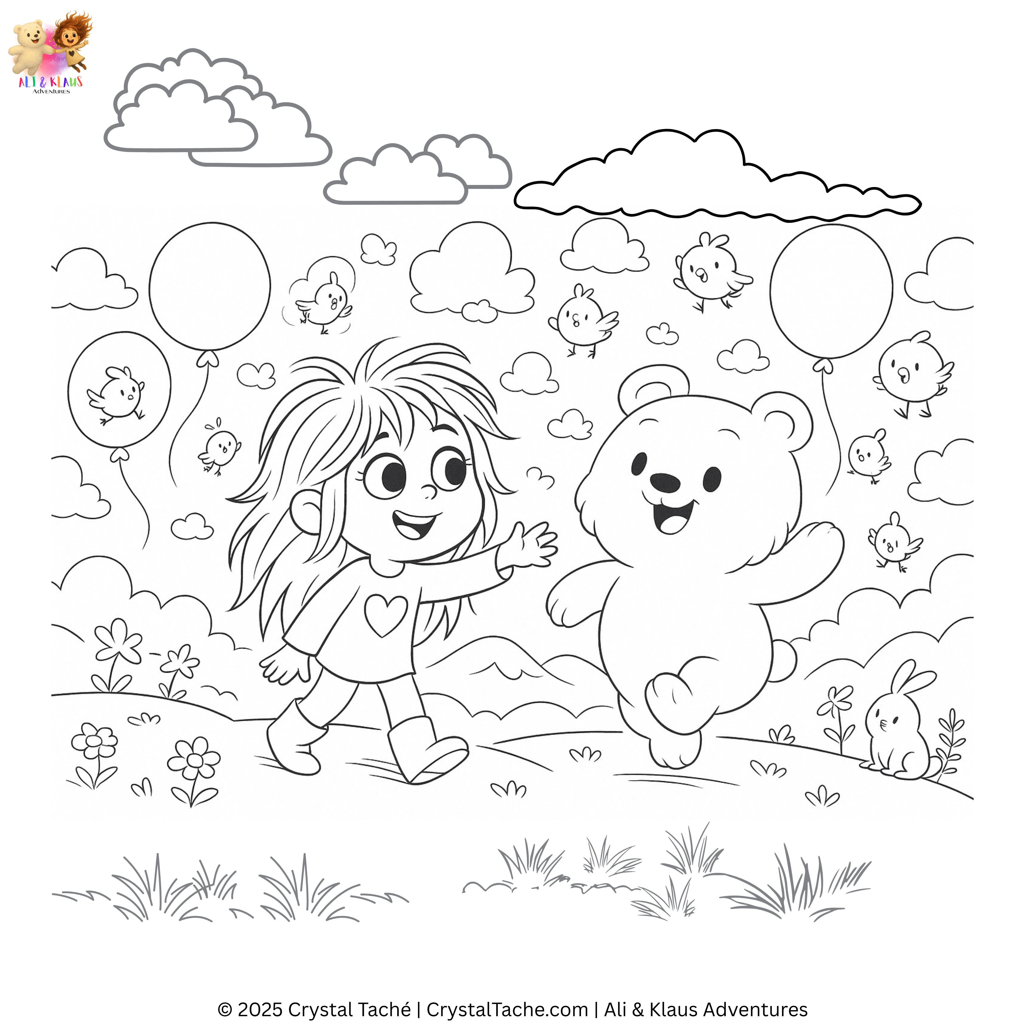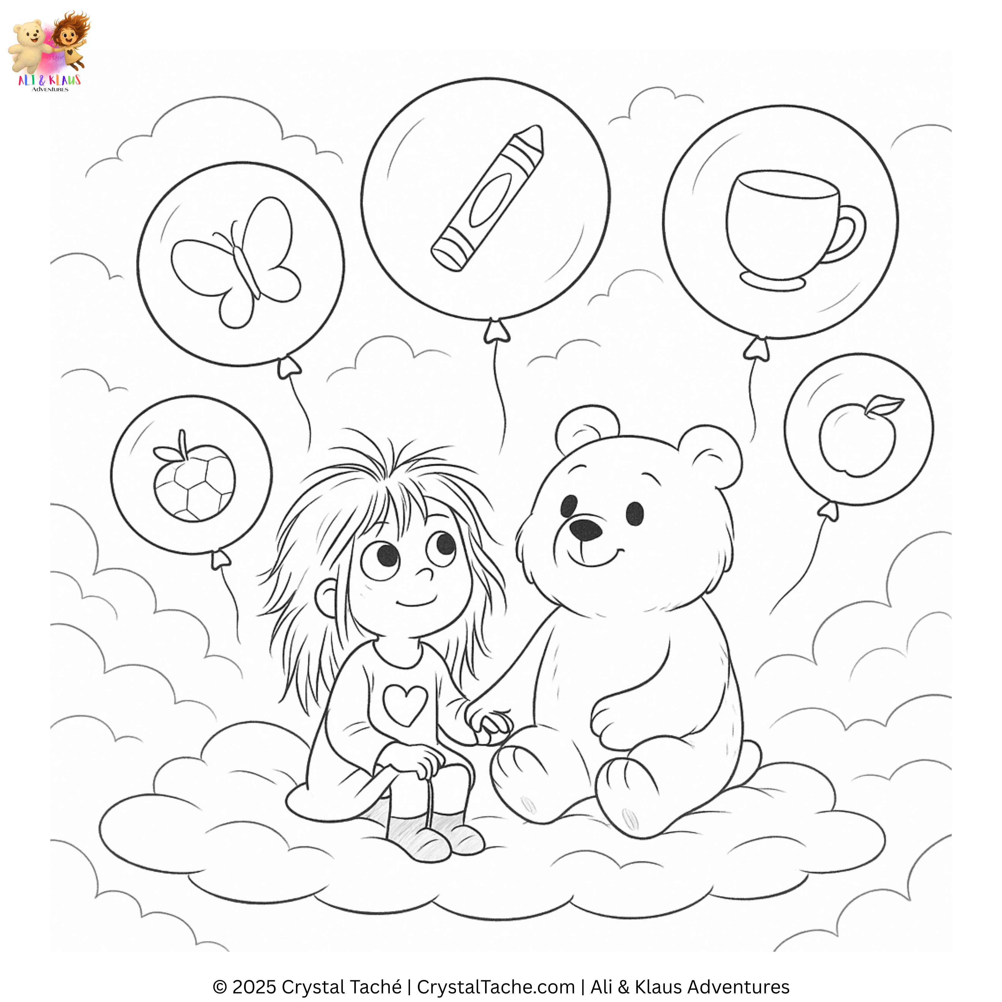 Get cozy, grab your crayons, and step into the world of Ali & Klaus, where every page is an invitation to imagine, express, and explore. From balloon-powered adventures to fluffy cloud friends and silly Peepadoos, these printable colouring sheets are perfect for quiet moments, big feelings, and creative play.